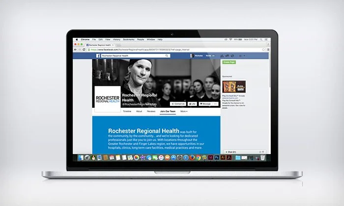 This project was a web application I designed in order to promote Rochester Regional Health to potential employees. The goal was to provide a tool directly on our Facebook page, making it easily accessible to the public, which would provide brief summaries of the different positions and areas of work employed by the health system. Another goal for the project was to provide a form to collect information from users interested in a follow-up. This info is sent directly to the recruitment team to act accordingly and also to track the success of the application.